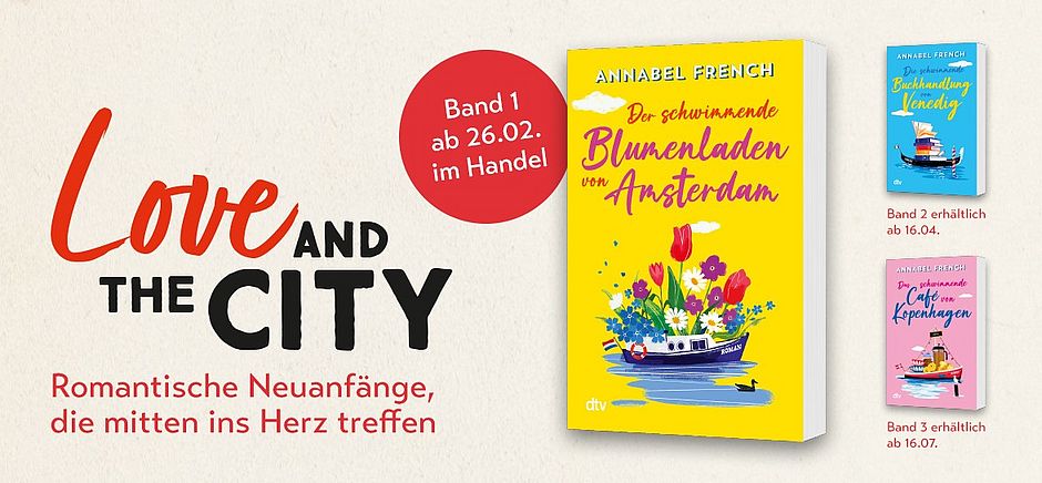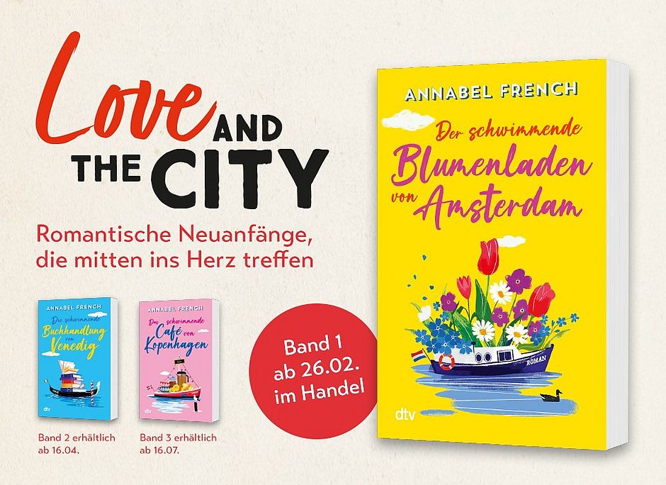 „Der schwimmende Blumenladen von Amsterdam“ (ab 26. Februar im Handel) von Annabel French erzählt von Rosie, die genug vom grauen Alltag und ihrem öden Bürojob hat. Kurzentschlossen lässt sie England hinter sich und zieht nach Amsterdam, um mit einem eigenen Stand auf dem berühmten schwimmenden Bloemenmarkt ihrer Leidenschaft als Floristin nachzugehen. Die pittoresken Grachten, bunten Blumenstände und die lebendige Atmosphäre der Stadt werden für sie zum neuen Lebensgefühl. Doch als ein Konkurrent ihr Geschäft bedroht und der griesgrämige Hausboot-Nachbar Max ihr Leben nicht leichter macht, muss Rosie sich nicht nur beruflich, sondern auch persönlich neu orientieren – und merkt dabei, dass Herausforderungen und Herzensmomente oft dicht beieinanderliegen.